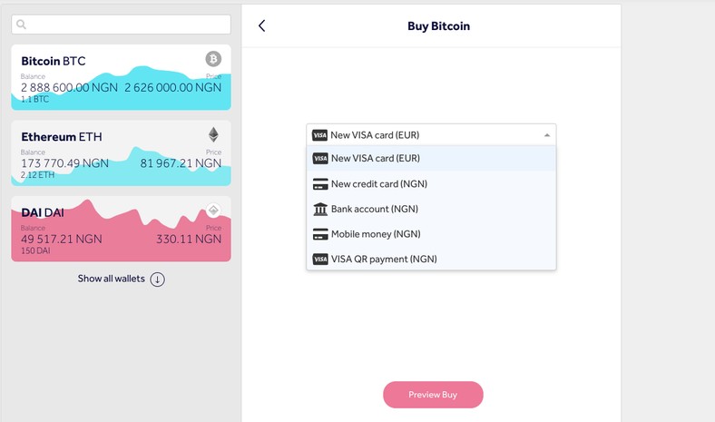 Another option available to buy bitcoin in nigeria is through a credit or debit card.